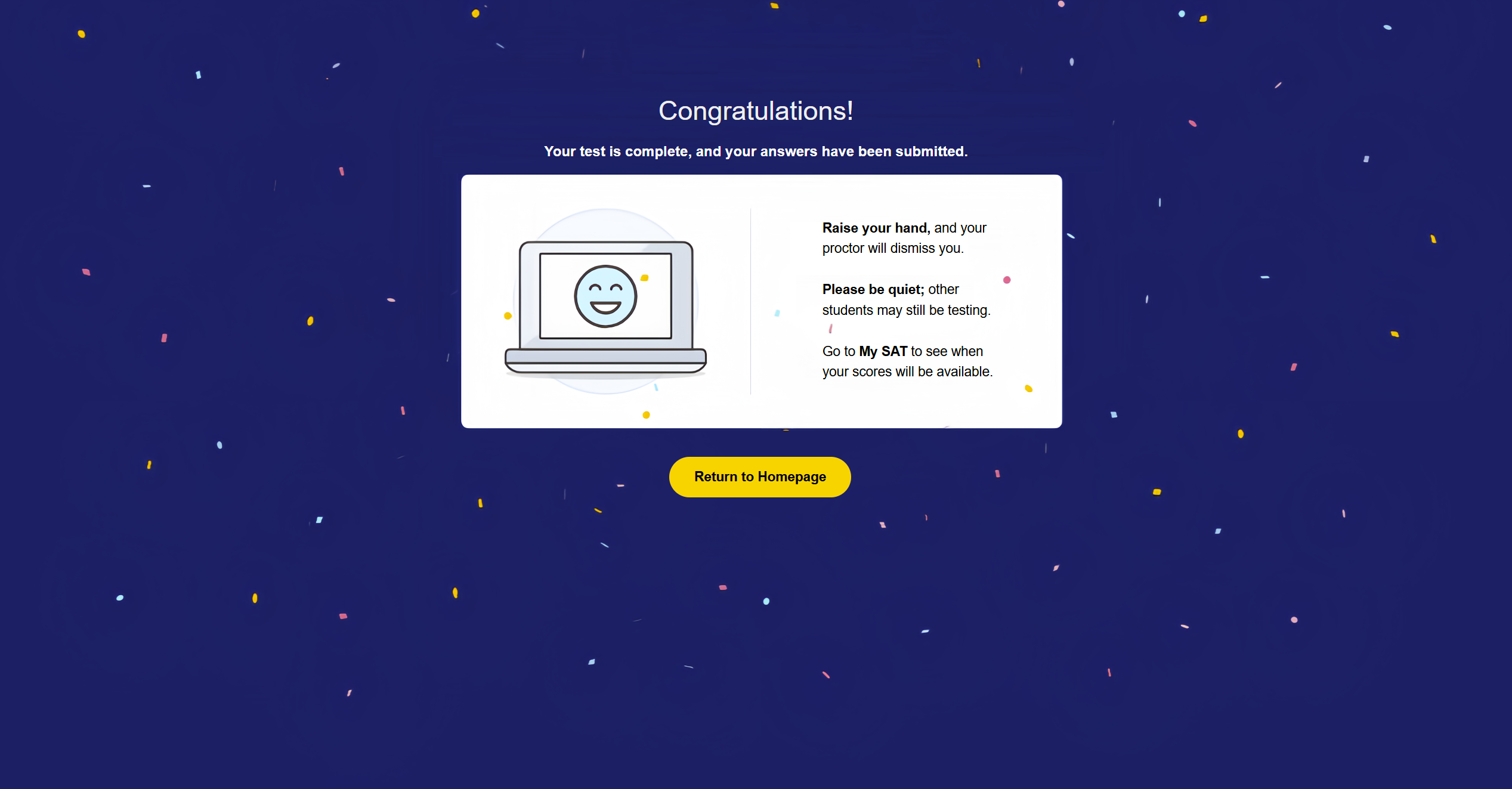 Please put your photo ID back on your desk then resume testing.